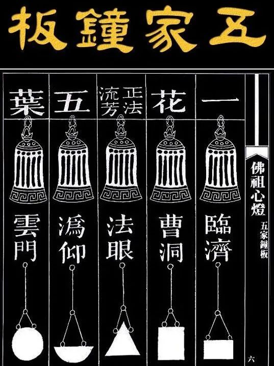 禅堂的钟板是龙天之号令,也是丛林中禅修大众二六时中起倒的眼目。禅门不同宗派的禅堂里挂着的钟板形状、尺寸各不相同,钳锤打法也有差异,以此表徵五家法脉,展扬各宗家风。以下略说五家钟板所表徵的各家禅法。