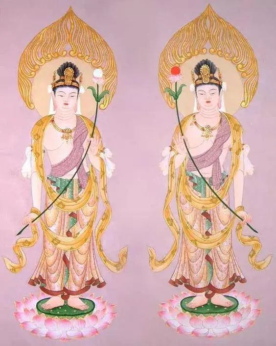 日光菩萨与月光菩萨共同辅弼东方净土药师如来弘法,一左一右,普渡有情,位补佛位。