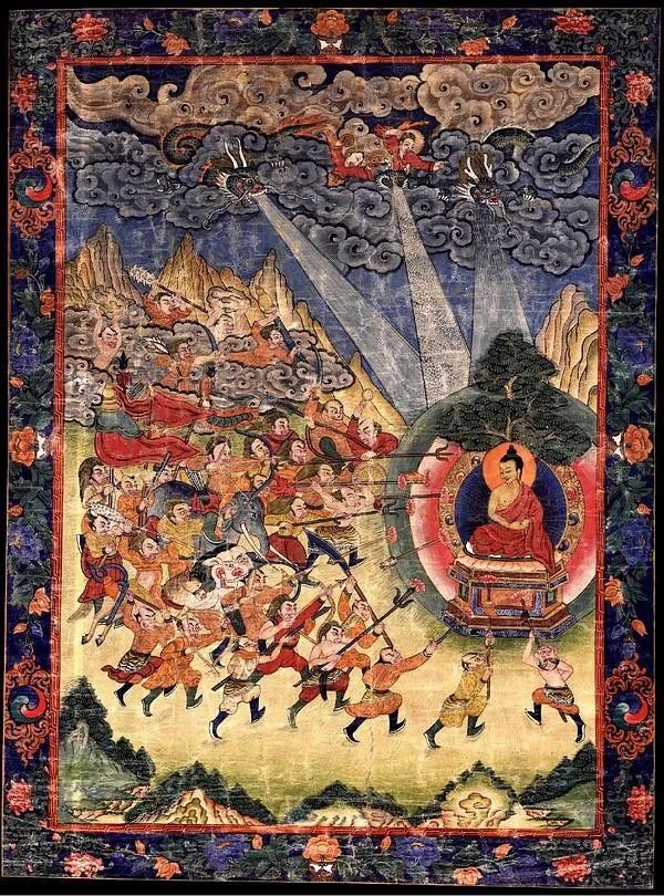 本师释迦牟尼佛于菩提树下成道之前,先是降服了前来侵扰的魔军(具体情形参见今日第四篇推文),于是八相成道之中也就有了降魔一项。我们平日的话语里,也常听到魔之一字,如“邪魔外道”、“走火入魔”、“斩妖除魔”、“道高一尺,魔高一丈”等,仿佛魔就是青面獠牙的穷凶极恶之徒。那么在佛教里,魔究竟是什么含义,又有几种魔呢?