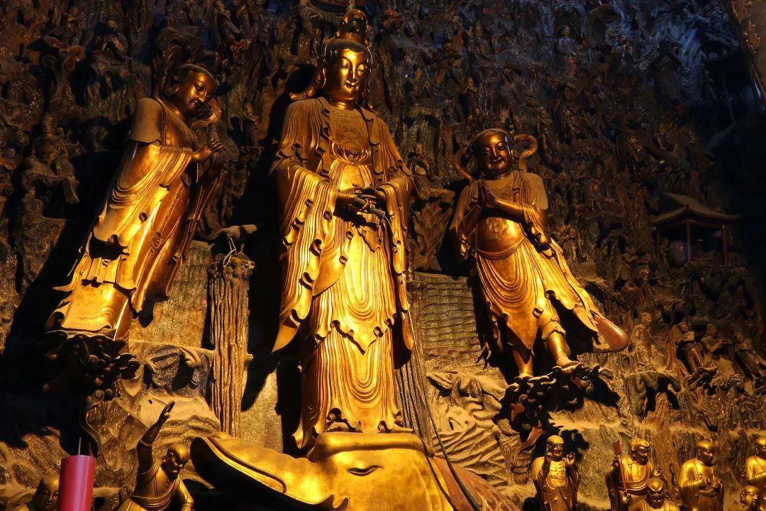 观世音菩萨就在佛前发誓:我若是将来能够利益一切众生,是他们都能得安乐,那么叫我这个身体上生出一千只手、一千只眼睛来。发了这个誓,果然就生出千手千眼来了。