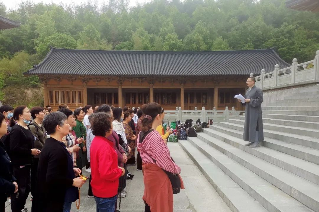 下午四点半,学员们在大殿前分组列队。相莲法师向各位学员说明了入住寺院的相关注意事项,希望大家能够珍惜福报,把握这四天难得的修学经历。