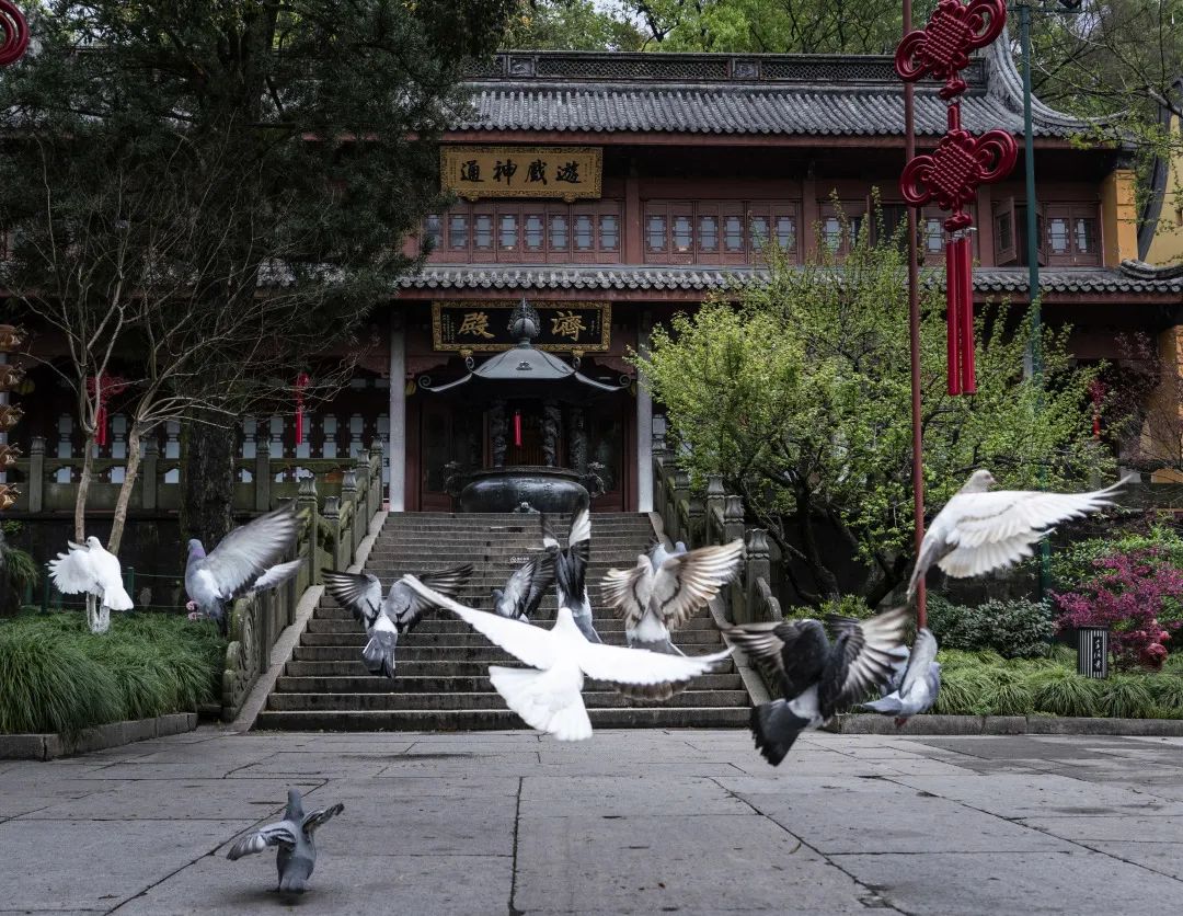 灵隐凭临钱塘武林山,为印度高僧慧理大师于东晋咸和元年326年创建。虽几经兴衰,然历史悠久,规模恢宏,庄严肃穆的殿宇与寺前的飞来峰浑然一色。