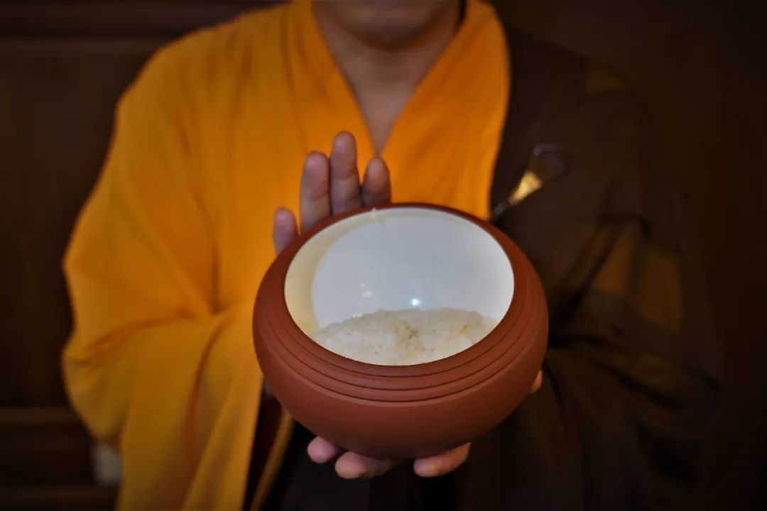 尊者见此情景,悲痛万分,不忍母亲再受饥渴之苦,急忙就用自己之钵盛满白饭,运用神通送到饿鬼道中给母亲充饥。其母见了白饭,迫不及待地伸出双手接过盛满白饭的钵。刚要开口吃时,突然由她口中喷出火焰,整钵的白饭都变成焦炭,无法食用。