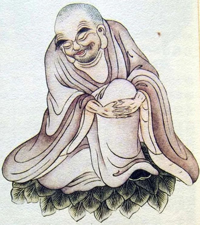 尊者法相所现为陶然而坐,额头饱满,浓眉大耳,欢喜沉醉,自得其乐。尊者悟性极高,精于禅定,已将禅定之乐隐藏于身心之中。