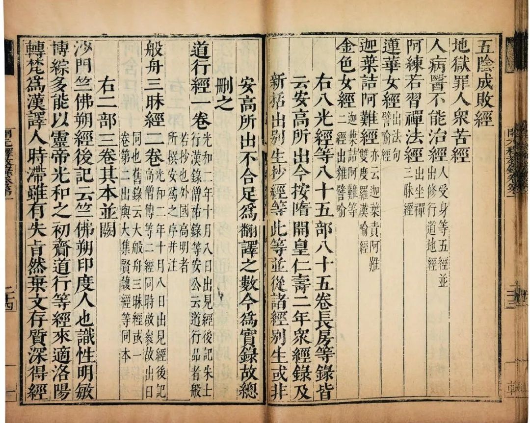 在这些目录里,《开元录》一种实际发生的影响最大。它的入藏目录共收一千零七十六部、五千零四十八卷,成为后来一切写经、刻经的准据。同时有华严寺沙门玄逸对于入藏各经的卷次、其目详加校定,撰成《开元释教广役历章》(三十卷,今残缺不全),这就更增加了《开元录》的准确性。