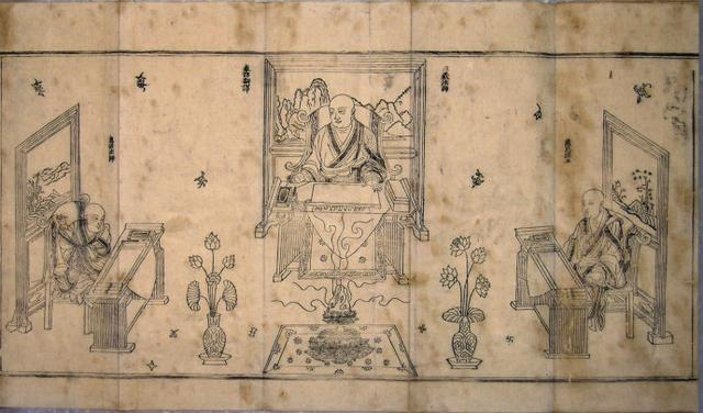 将历代翻译的佛典编成“一切经”,作为寺院的藏书来缮写,这在隋代,就已编定了《仁寿众经目录》(彦琮等依《法经目录》重编)。唐初,在这一基础上增订而成的目录有好几种。