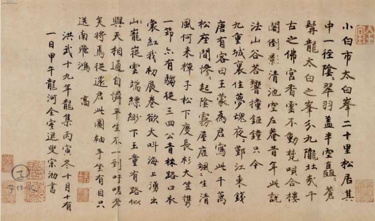 宗泐(1318—1391)与来复齐名。洪武五年(1372)于钟山建法会,太祖命他升座说法,并作《赞佛乐章》八曲,又命主金陵大天界寺,掌全国僧事。与如玘笺释《心经》《金刚经》《楞伽经》,颁行全国。所著有《全室外集》九卷。