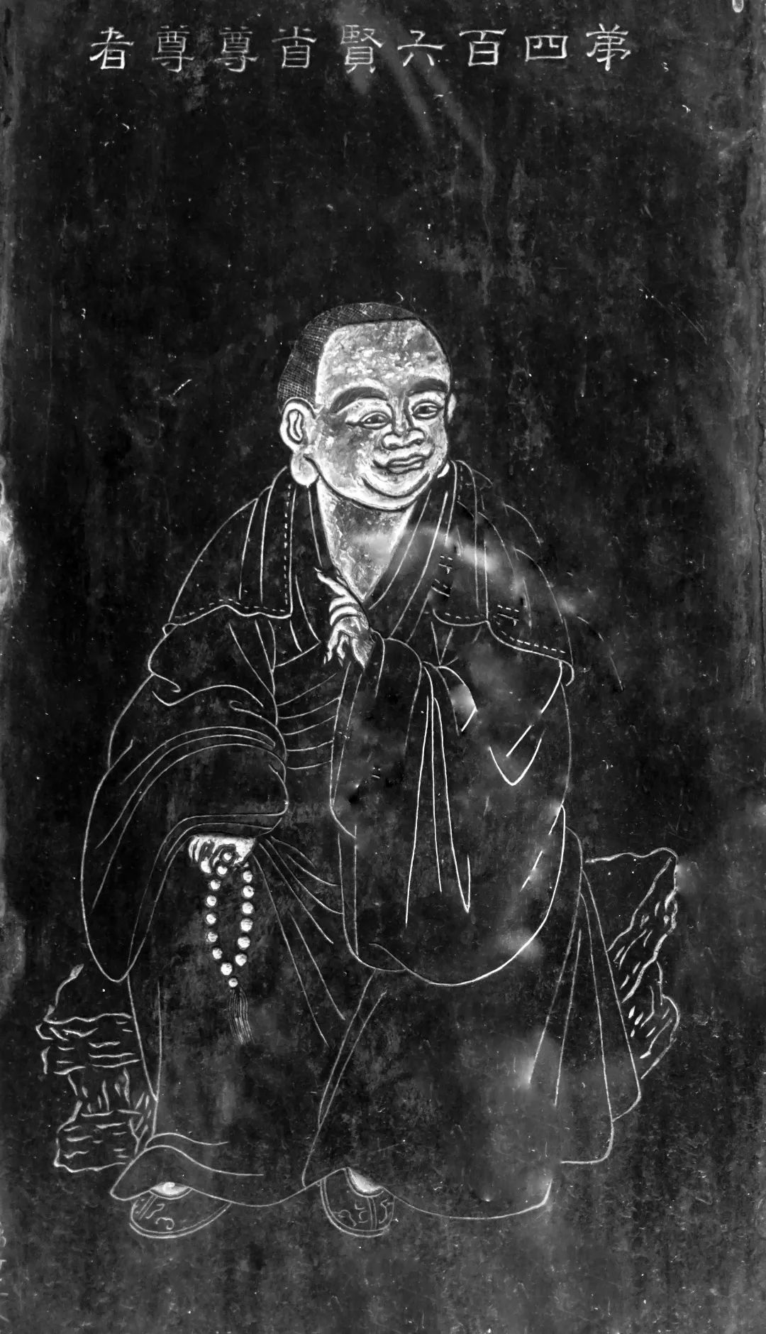 五百罗汉第肆佰零陆尊贤首尊尊者,即华严三祖贤首国师(643—712),讳法藏,字贤首,帝锡别号国一法师。大师俗姓康氏,其祖先为康居国丞相,祖父之时归化中国。