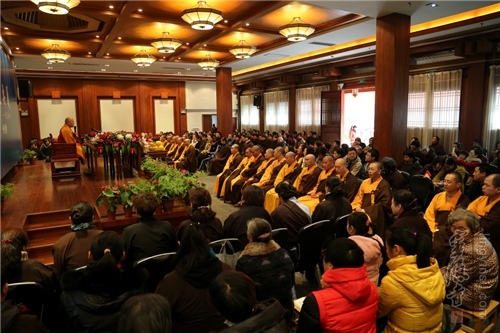 2015年11月28日上午,应香积寺监院衍空法师及香积寺四众弟子至诚礼请,灵隐寺方丈光泉大和尚赴香积寺,为广大信众作"心经要义"佛学讲座。