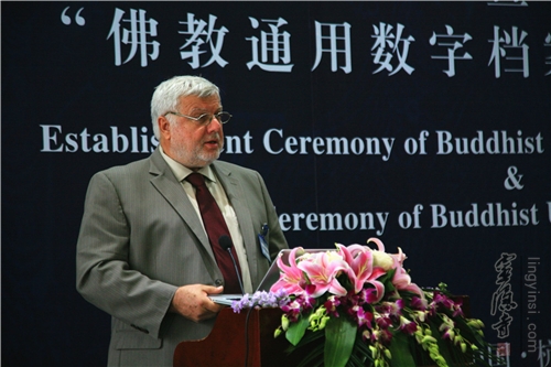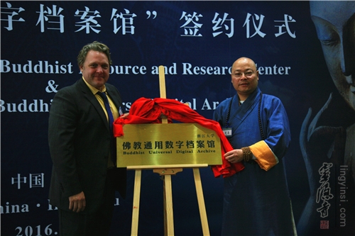 国际文献保护基金会执行董事长杰夫先生与光泉大和尚共同为"佛教通用数字档案馆"项目揭牌