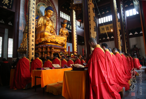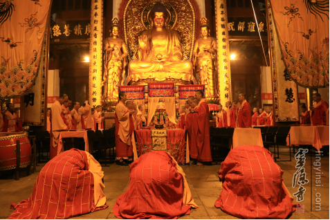 法会期间,僧众如法如律,诚诵礼忏七日,七天来,承蒙诸佛菩萨加被,龙天善神护佑,法师们清净观想、祈诵,居士善信笃实虔诚的礼拜,以众缘和合,成就庄严法会,使僧俗同沾法喜,共享法益。