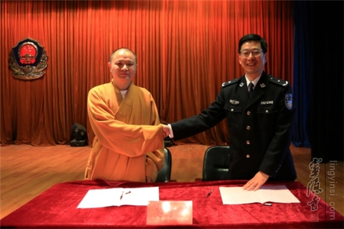 常法法师与吴震所长分别代表云林公益基金会与拱宸强制隔离戒毒所共同完成"远离毒品"项目意向书的签约。