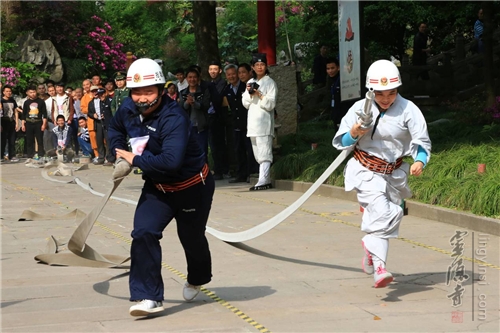 消防运动会上,来自杭州各佛道教寺观的志愿消防队都是由本寺的僧人、道长或职工组成。11支队伍先后参加了消防知识问答、一人两带水带连接操作、消防栓快速出水灭火操、水带打瓶子和趣味综合接力等多个项目的激励角逐。