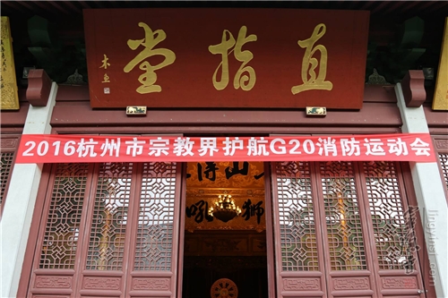 2016年4月15日,由杭州市民族宗教事务局、杭州市消防局主办,杭州市西湖风景名胜区消防大队协办,杭州市佛教协会、杭州灵隐寺承办的"杭州市宗教界‘护航G20’消防运动会"在杭州灵隐寺举行。浙江省杭州市委统战部副部长、市民宗局党组书记杨志刚、杭州市公安消防局局长金松柏、杭州市民宗局宗教处处长胡胜军、杭州市佛教协会会长光泉法师、杭州市佛教协会副会长月真法师、杭州市佛教协会副会长智圆法师、杭州市道教协会会长董中基道长、杭州市伊斯兰教协会副会长魏志明、杭州市基督教三自爱国会常务副主席张忠成等人出席活动,开幕式由杭州市民宗局党组副书记、副局长唐明壮主持。