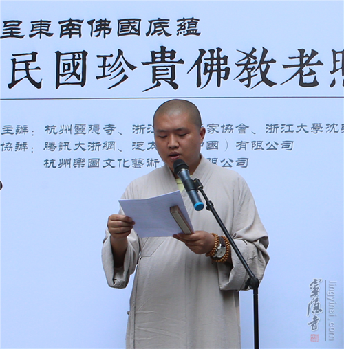 开幕式由杭州佛学院本空法师主持。灵隐寺监寺廓忍法师、浙江省摄影家协会王小川副主席、浙江大学沈弘教授、徐忠民教授出席了开幕式并讲话。