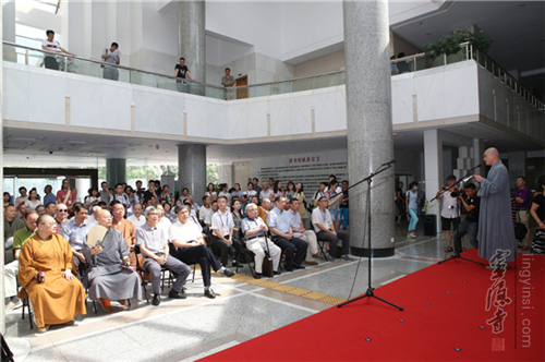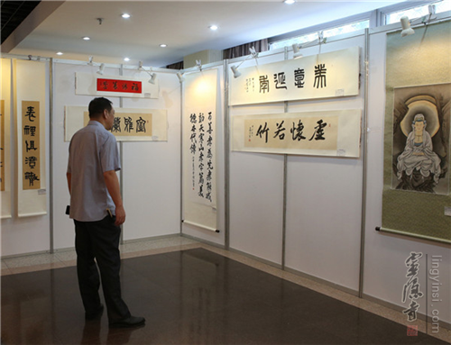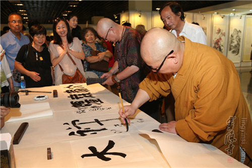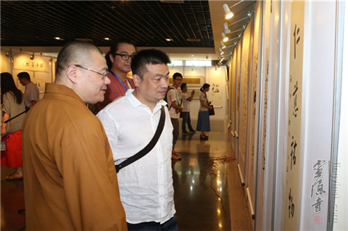 浙江省文化厅厅长金兴盛,前省文化厅厅长、著名书法家钱法成,省文联书记处书记、书协副主席赵雁君,杭州市宗教局党组书记、局长杨志刚、宗教处处长胡胜军,灵隐寺方丈光泉法师,韬光寺方丈月真法师,灵顺寺方丈印旭法师,市侨办副主任鲍卫东,市台办副主任吴隆,浙江图书馆馆长徐晓军,西泠印社社团处长顾祥森,灵隐寺监院义广法师,中国新闻社浙江分社副社长、总编辑柴燕菲,云林公益基金会理事长常法法师,以及原中国美术学院副院长、著名书法家高法根,江南书画院院长、国家一级美术师宋柏松等数十位书画艺术家参加了开幕式并参观了展览。开幕式由灵隐寺同润法师主持。