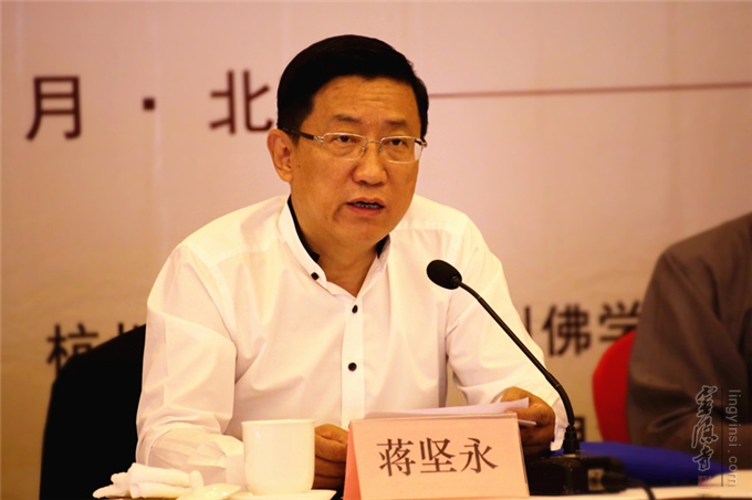 国家宗教事务局副局长蒋坚永在致辞中讲到,巨赞法师是中国佛教爱国爱教的典范,是党和政府肝胆相照的亲密朋友,巨赞法师是优秀的佛学研究大家,是"人间佛教"思想的开拓者,是现代佛教教育的先驱。要进一步总结研究巨赞法师的爱国爱教思想,继承法师的精神遗产,坚定不移地走与社会主义社会相适应的道路。