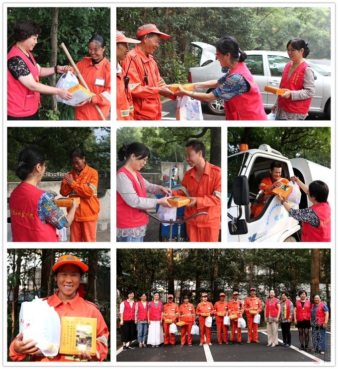 根据杭州云林公益基金会每年例行的中秋关爱活动安排,本次中秋节关爱活动期间,杭州云林公益基金会志愿者先后走访了周浦敬老院、袁浦敬老院、古荡敬老院、朝晖五区老年公寓、下城区朝晖街道工疗站、灵隐街道敬老院、上天竺安养堂、松龄苑公寓、北景园老人公寓以及虎跑路环卫站、满觉路环卫站、玉皇山路环卫站等机构和单位,看望各位老人和环卫工人并向他们致以真挚的节日问候。