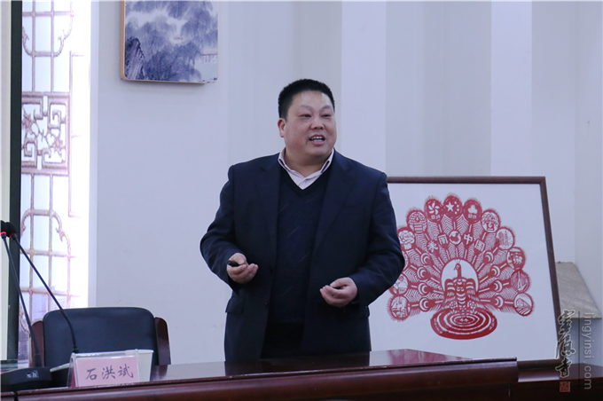 石洪斌教授做"春联文化与历史"主题讲座。介绍春联的历史和对联的基本要求和技巧的同时,石教授还与现场的听众互动对对子,把我们熟知的杭州地名相互对仗,通俗易懂,逸趣横生。