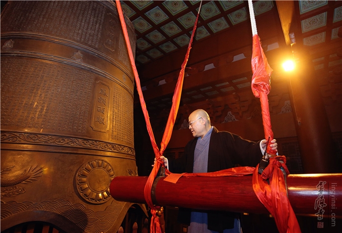 灵隐寺方丈光泉法师为大众撞钟祈福