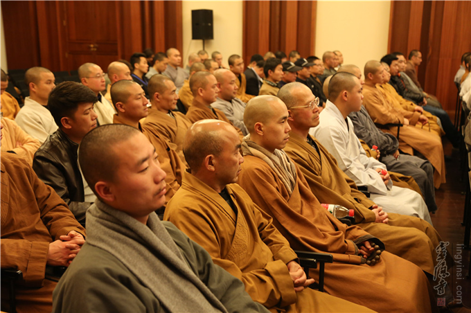 杭州市公安局黄吉做了治安方面的讲座。重点讲解了佛教寺院等人流密集场所的治安应急措施和处理技巧。