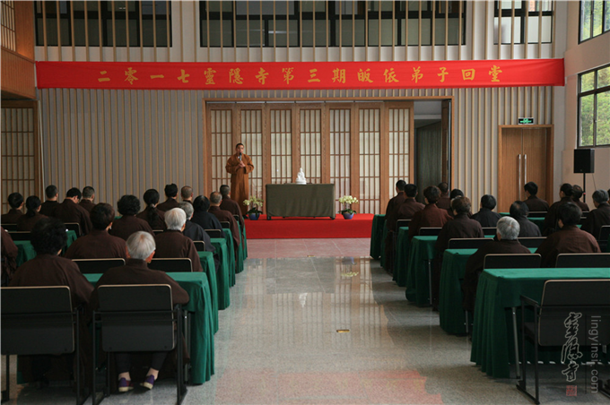5月12日,灵隐寺举办第三期皈依弟子回堂活动。此次回堂活动为期5天,全程禁用通讯与娱乐工具,以方便大家放下外缘,专心求道。