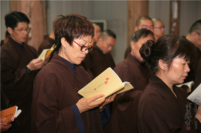 12日晚上,参加回堂的各位居士在法师的带领下学习了过堂、早课、念佛等佛门礼仪及寺院生活的基本仪轨。为在接下来的几日中与常住法师们一起勤做早晚课诵,体验晨钟暮鼓的出家寺院生活做好了准备。