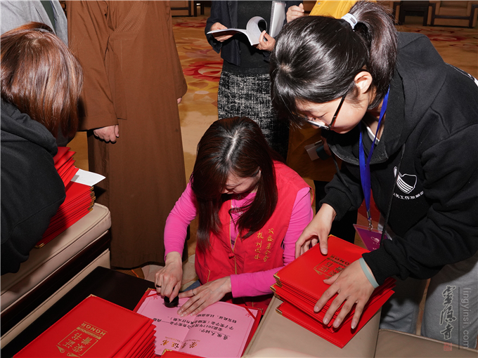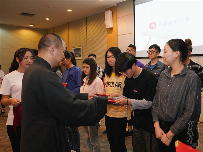 浙江省学生资助管理中心陈龙春主任、杭州电子科技大学纪委书记牛东红教授、杭州云林公益基金会理事长常法法师、副理事长圣贤法师,以及来自杭州电子科技大学大学、浙江传媒学院、浙江水利水电学院等有关单位的领导出席活动,并上台为获得2017年度"尚德学子"荣誉的40位个人和8个团队颁奖。