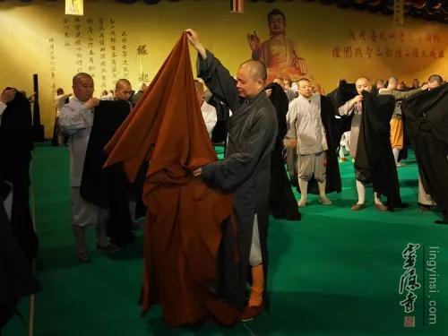 【导读】2018年4月29日(农历三月十四日),"戊戌春灵隐寺三坛大法会"进入第五天。开堂大师父芳振律师亲身示范僧人"坐如钟"的威仪要求,教授海青如何穿着,法器如何使用。这些僧人日常行持的细节,在佛门都有着严谨的规范。北宋著名的理学家和教育家、宋明理学的奠基者程颢和程颐两位理学大家,在见到佛教丛林风貌之后曾感叹:"三代礼仪,尽在于斯!"由此可见佛门礼仪在佛教行持中的重要性。