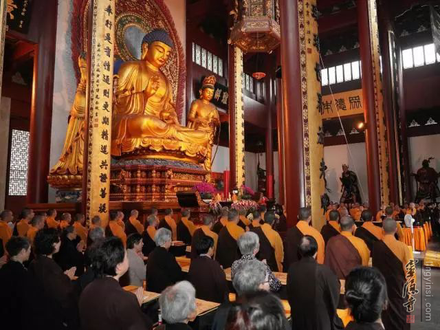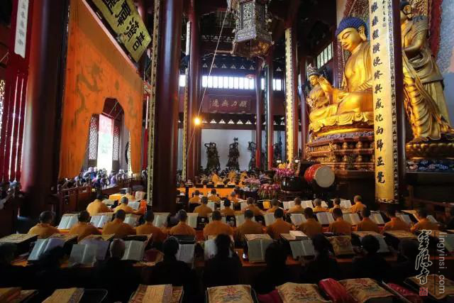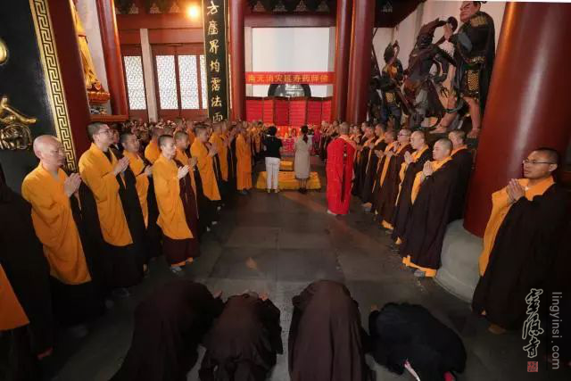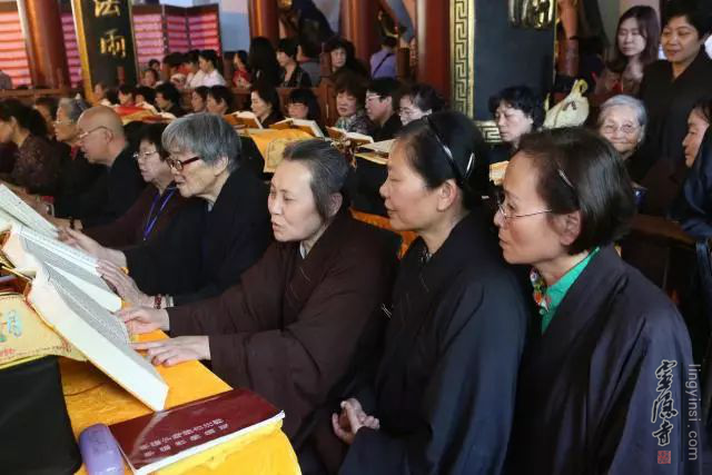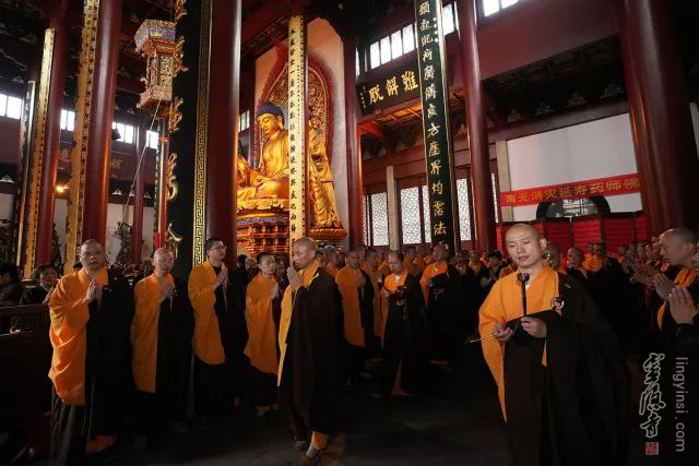 2018年5月29日(农历四月十五),杭州灵隐寺启建安居共修华严法会,四众弟子齐聚药师殿恭颂《大方广佛华严经》,以此诵经功德祈愿世界和平,国泰民安,风调雨顺。