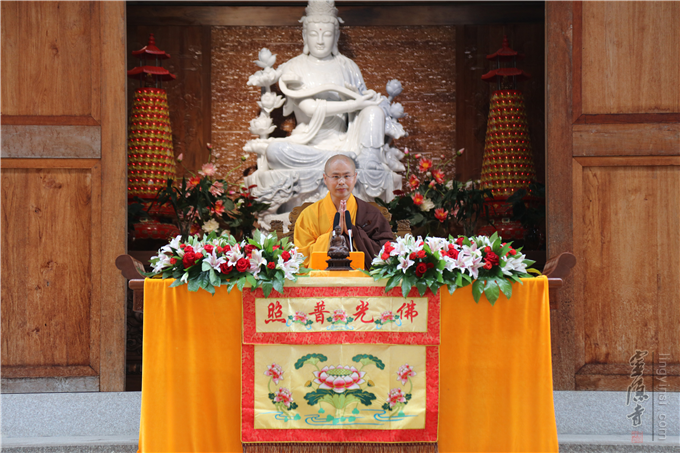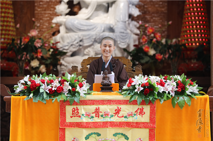 本日最后一位登座说法的是曾在中国佛教讲经交流会上获得过金莲花一等奖,来自北京天宁寺的心慧法师。她宣讲的内容是《如何利益众生》。她围绕大家所熟知的经典《普门品》展开宣说。用一个个鲜活的事例,深入浅出地为大家解读了什么是真正的无缘大慈、 同体大悲,希望大家都能树立正确的"利益众生观",使自己的悲愿与观世音菩萨的悲愿相应,使这个世界上时时有观世音菩萨的示现,处处有观世音菩萨的救度。心慧法师的宣讲和蔼亲切,娓娓道来,现场许多听众不禁频频合十称是。在宣讲接近尾声时,心慧法师还带领大家做了回向,把是日的巡讲功德回向给十方法界。