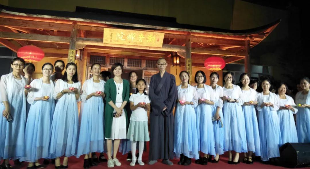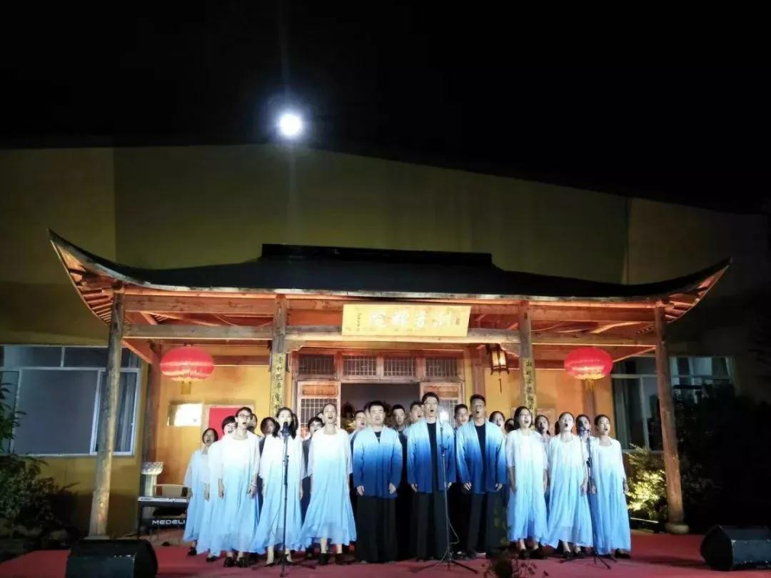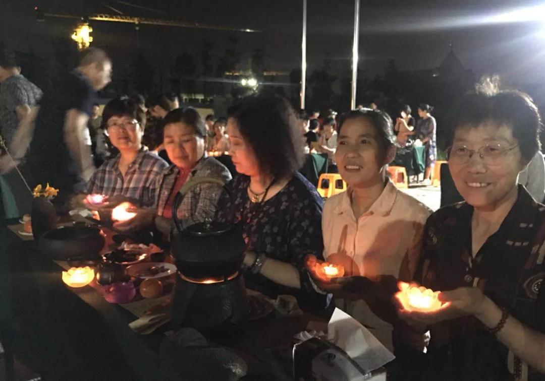 在大众合唱《明灯》中,"千江印月"弘一法师音乐作品欣赏晚会暨潮音书院中秋普茶会圆满落下帷幕。