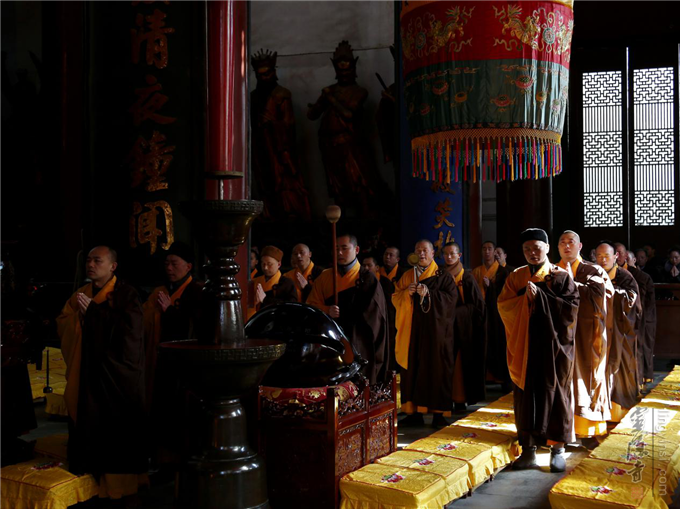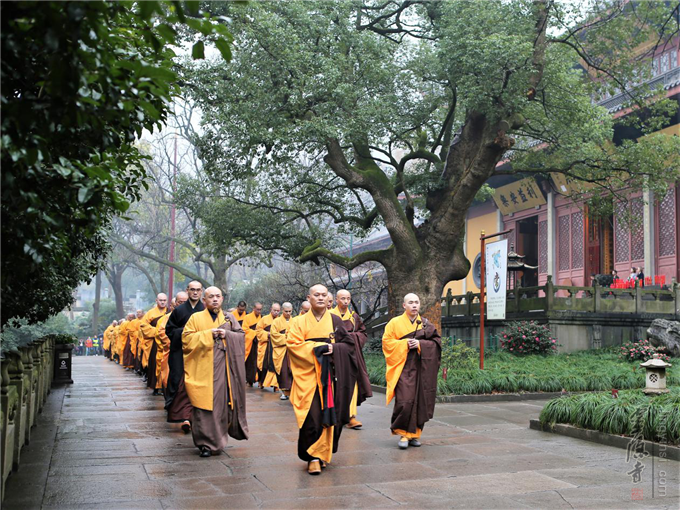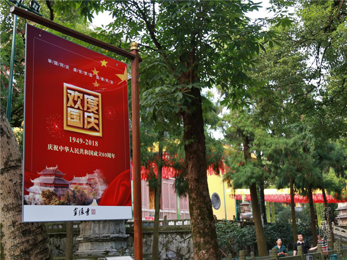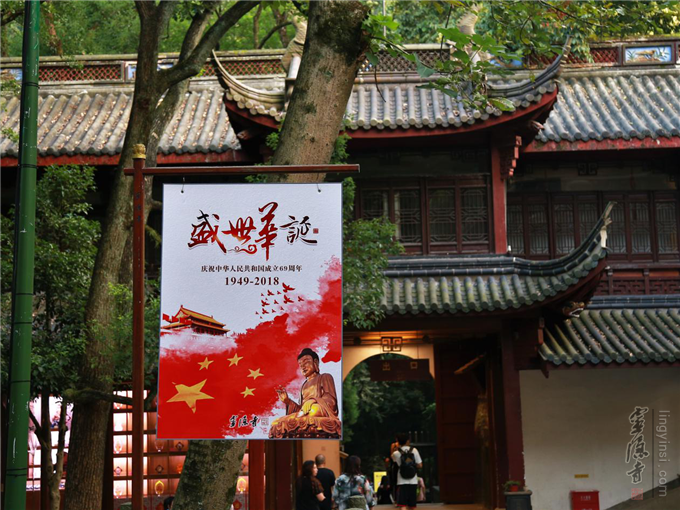 秋风送爽,金桂飘香,又迎祖国华诞。今天清晨五时,杭州灵隐寺晨钟奏响,梵音萦绕。全体僧众齐聚大雄宝殿参加庄严神圣的早课,欢度国庆,感念国恩,共祝中华人民共和国69周年华诞。