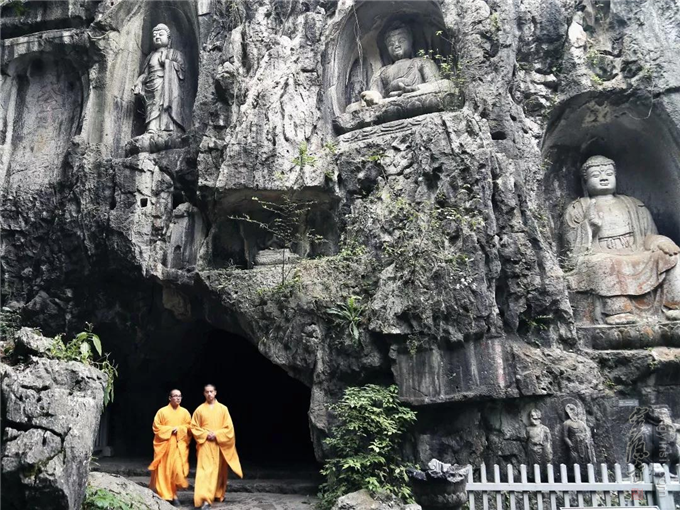记不清是第几次走进灵隐了,之前都只是感慨时光流转及千年古刹的独特神韵。而此次在老师们带领下走读飞来峰、灵隐寺、永福寺、韬光寺,领略到了佛寺的清幽、肃静的同时也让浮躁的心灵得到净化。每一座亭台楼宇在老师们的解说下又赋予了文化交融的意义,老师们讲解灵隐出处于印度慧理至飞来峰感慨"此天竺灵鹭峰一小岭,不知何时飞来?佛在世日,多为仙灵所隐。"虽历经五代、两宋、元代至今,不能免于损毁,但遗迹造像的庄严和佛寺建筑的宏伟也能让我们能领略到"仙灵所隐之地"的玄妙。