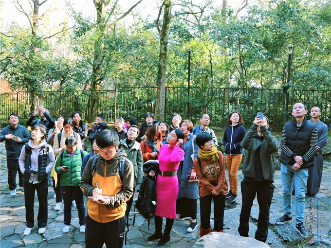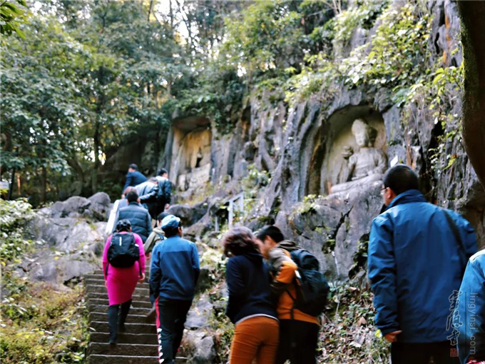 走读过程中,云林书院将飞来峰的自然地理环境、历史传说缘起及飞来峰石刻造像的营造为走读团成员们娓娓道来。导读老师带领大家探访了少有游人踏足的"青林洞"、"玉乳洞",此二洞内多为五代至两宋时期的造像作品。尔后,进龙泓洞,沿冷泉溪一路向西,观赏了多龛飞来峰较为有代表性的造像。