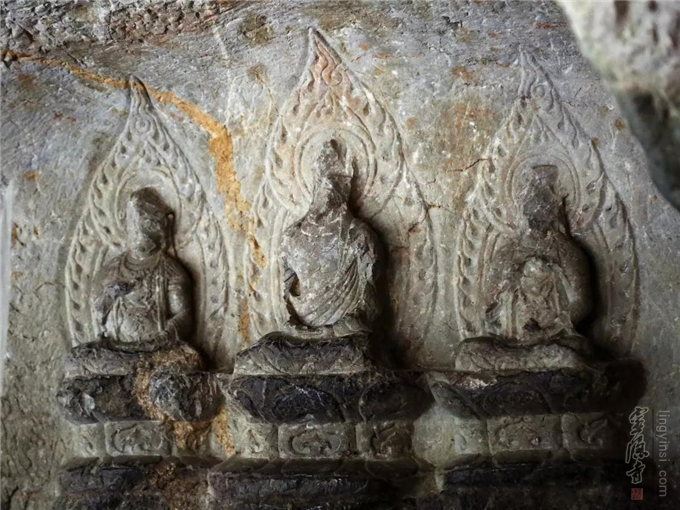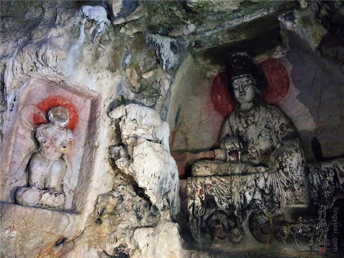 五代时期的小型"西方三圣"像是飞来峰造像中最早的石窟佛像
