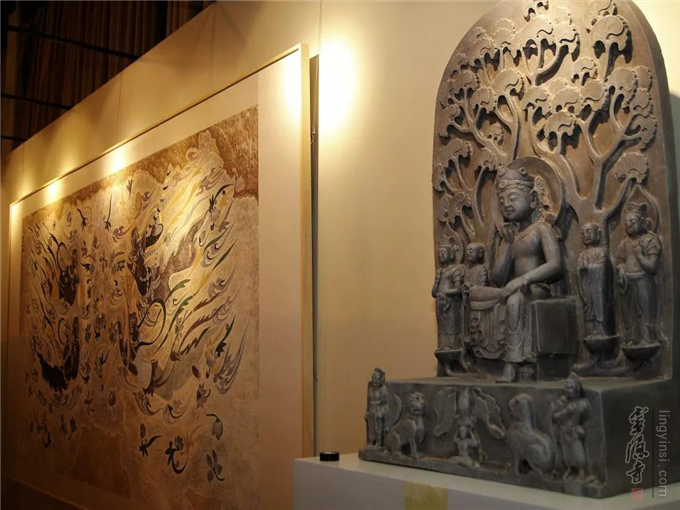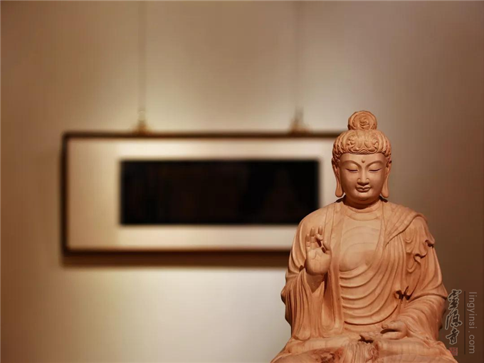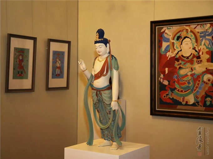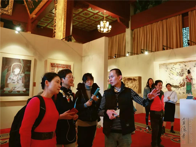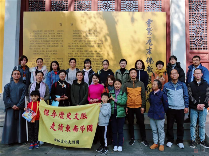 走读团成员进入灵隐寺。通过智法法师的解说,大家了解了灵隐寺的开山建制、韦陀菩萨像与经幢佛塔等宋代文物。在直指堂,走读团成员参观了由浙江飞来峰艺术研究中心(筹)主办的"灵鹫飞来佛教艺术展"。