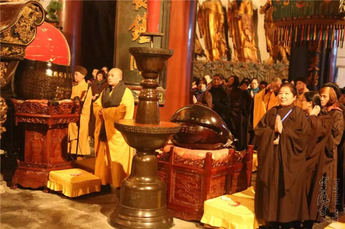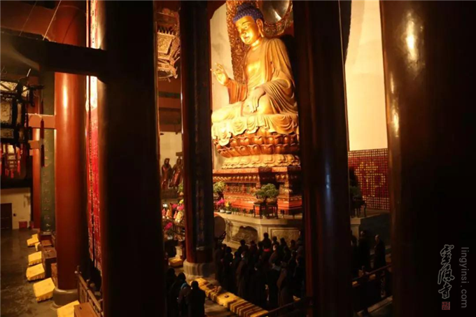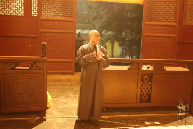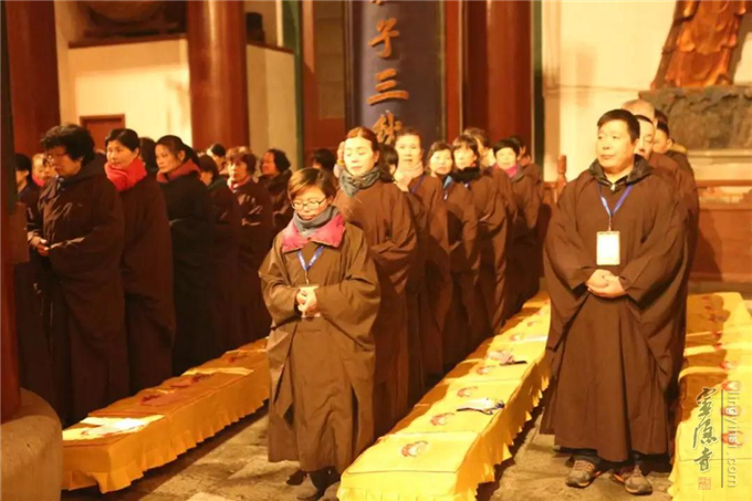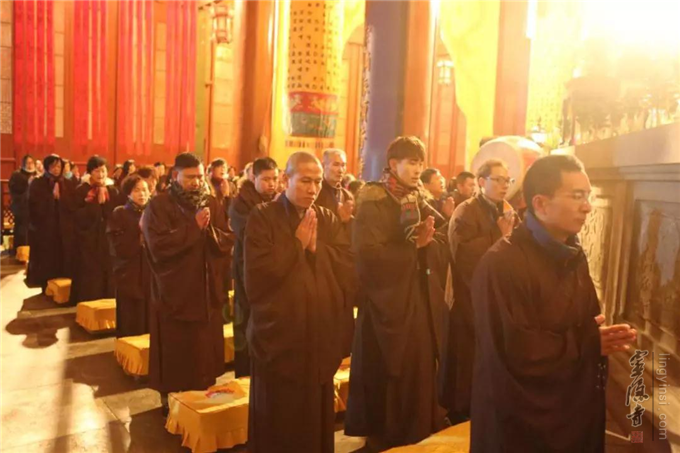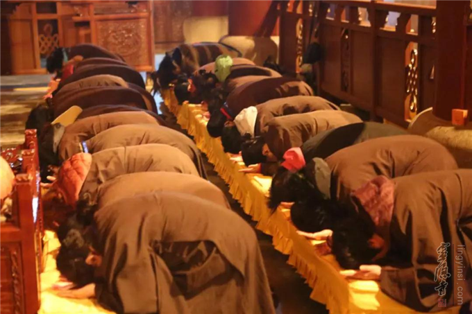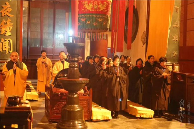 12月8日晚,瑞雪飞舞,杭州灵隐寺大雄宝殿内灯火通明,梵音缭绕,云林志工团的一百余名志工们在法师的带领下举行2018年第七次忏摩活动。志工们身着海青,在佛前忏悔往昔罪业,祈求佛光沐浴,佛力加被,荡涤身心。