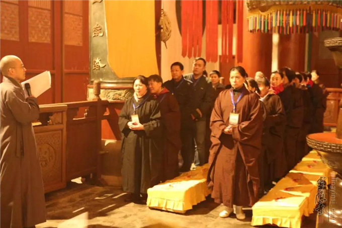 门芝法师开示结束后,在悦众师的带领下,志工们齐声唱诵"南无本师释迦牟尼佛"佛号进行了虔诚的忏摩。