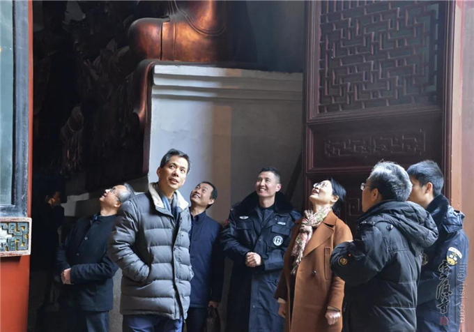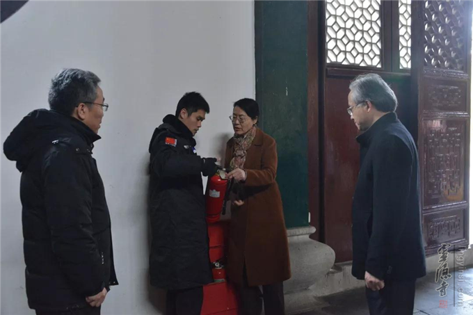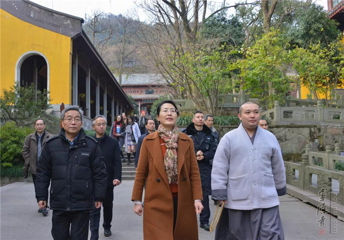 12月29日下午,杭州市政府陈红英副市长一行来到杭州灵隐寺,调研年度安全工作落实情况。灵隐寺监院智光法师陪同调研,并详细介绍了寺院安全工作具体实施情况。