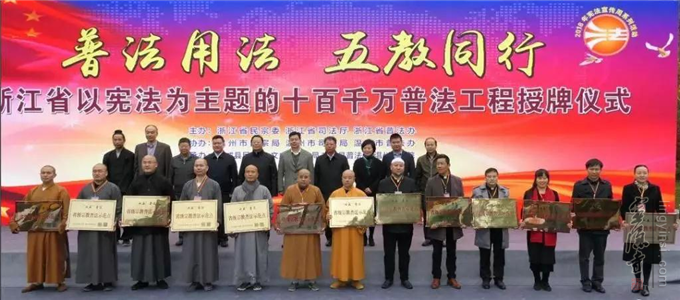 2018年,以宪法为主题的"十百千万"普法工程在浙江宗教界启动。杭州灵隐寺结合时代主题,按照省市有关部门的要求,开展普法宣传教育活动。
