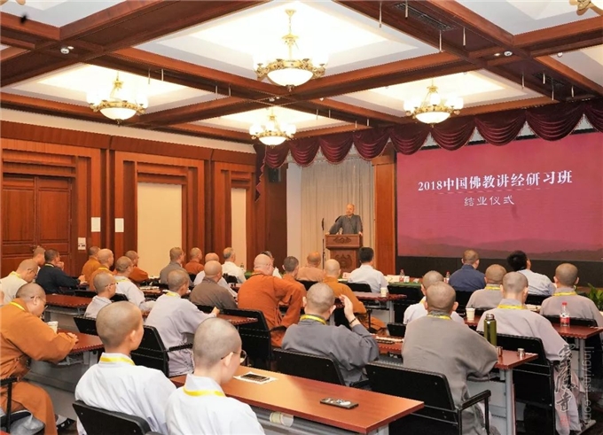 8月 27日至 9月 14日,来自全国 25个省市自治区直辖市的46名学员参加"2018中国佛教讲经研习班"学习。课程分语言训练板块、教史典籍板块和时代现状与特色板块。内容涵盖佛教经典导读、中国佛教讲经发展史、语言表达训练、受众心理分析、新媒体时代弘法特点以及中国佛教海外弘法现状等。研习班还特别为法师在讲经弘法过程中产生的问题,探讨了解决方案。