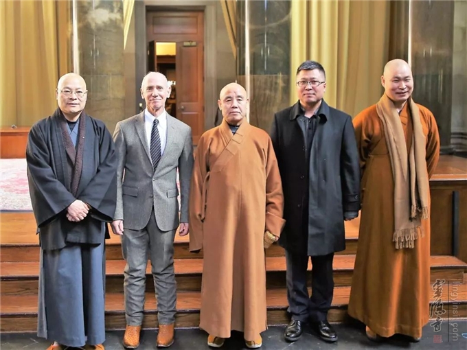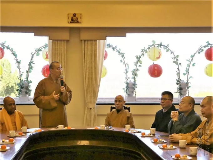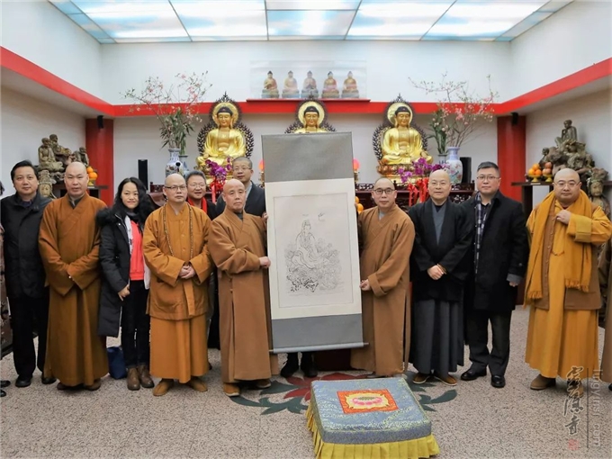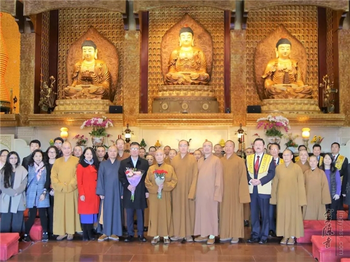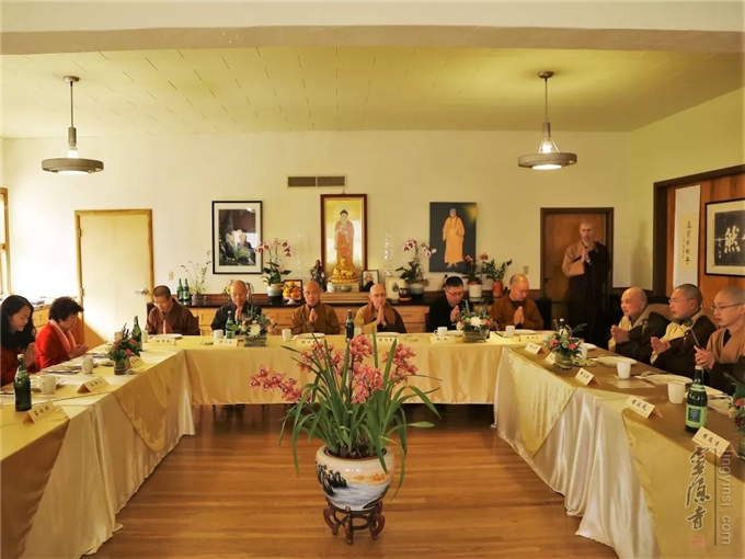 应中国佛教协会邀请,加拿大佛教会会长、湛山精舍住持达义法师专程赶到纽约。2月20日,中美加三国佛教界代表40多人齐聚纽约法王寺,举行2019中美加三国佛教座谈会。