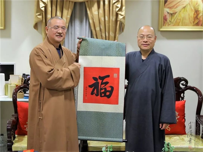 光泉法师向恒实法师赠送礼物