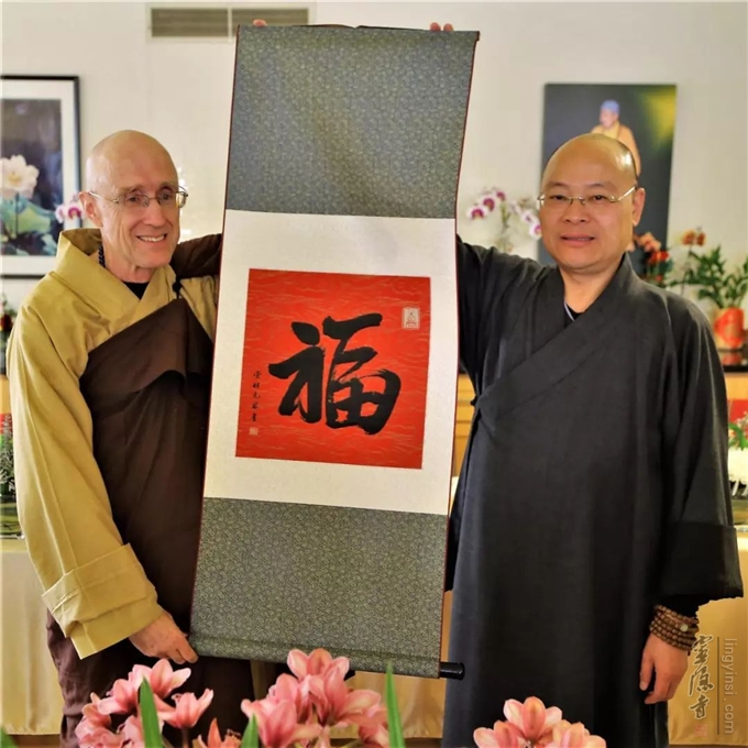 中国佛教代表团参访纽约嵩德寺并向住持明予法师赠送礼物