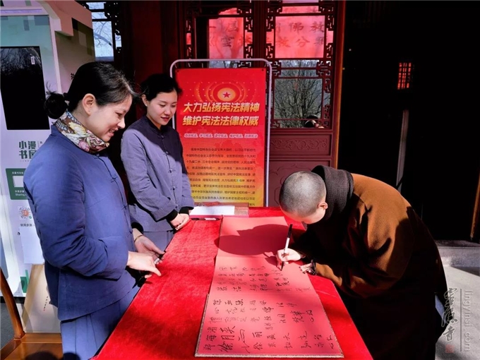 当天下午,杭州灵隐寺在直指堂举办《敦煌遗书保护对中华古籍保护的启示》讲座。国家古籍保护中心办公室主任、国家图书馆研究馆员、敦煌遗书及佛教文献研究专家林世田向大众讲述了历代高僧大德翻译、刊刻、整理、保护、传承佛教古代文献的殊胜之举;介绍了国家实施中华古籍保护计划的目的、意义和目前已经取得的成果。
