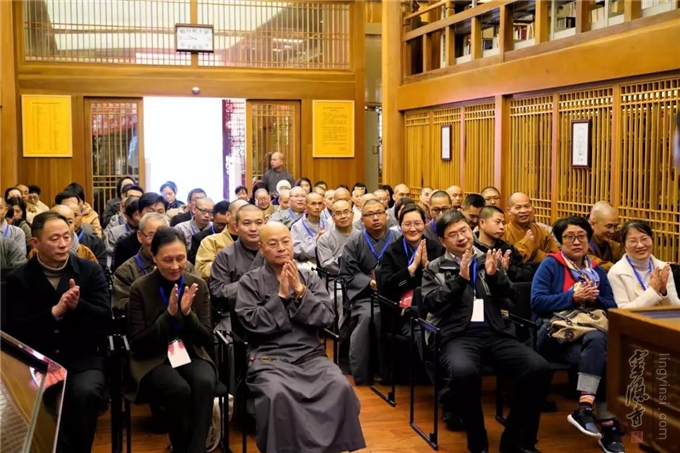 杭州灵隐寺监院智光法师发言说:杭州灵隐寺云林图书馆于2005 年编成《云林佛教图书分类法》,经过十多年的使用和不断总结,新修订的《云林佛教图书分类法》(修订版) 遵循佛教基本理论架构,在充分吸收历代佛教经录分类经验的基础上,契合佛教发展实际,兼顾未来发展趋势,成为一部较为完备的佛教图书分类法。