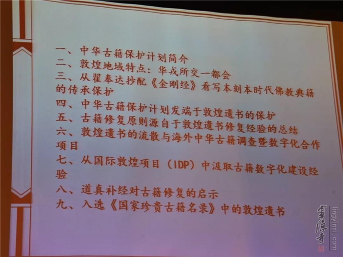 当天下午,灵隐寺直指堂举办《敦煌遗书保护对中华古籍保护的启示》讲座,倡导中华传统文化保护,吸引众多学者赴会聆听。