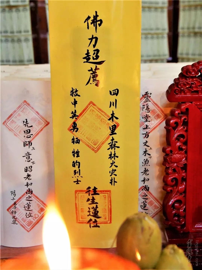 2019年4月4日下午(己亥年二月廿九),杭州灵隐寺在药师殿超荐在四川凉山州木里县森林火灾中罹难的30位英雄。祈愿故者佛光垂佑,弥陀接引,早登极乐。
