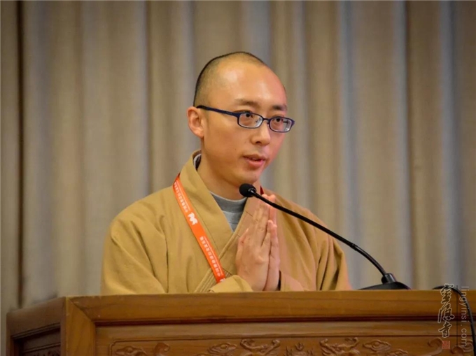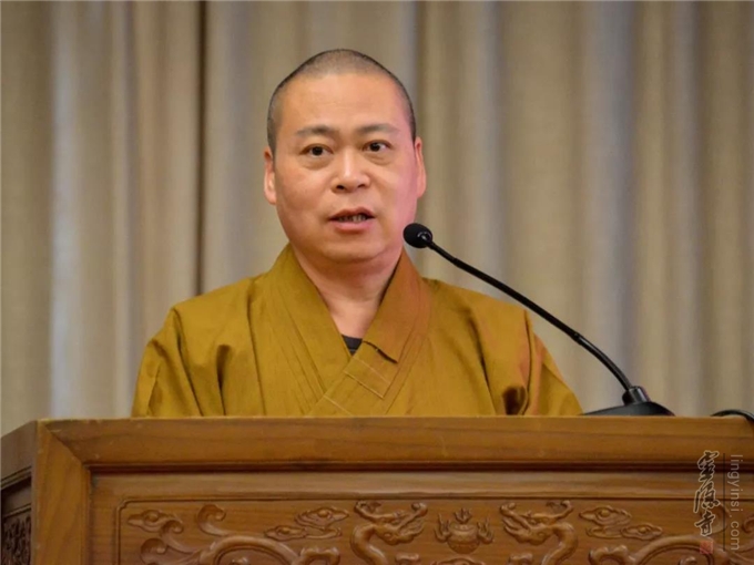 能慧法师代表研习班学员上台发言。他说:举办研习班,为讲经法师们搭建了学习交流的平台。丰富的课程内容,开拓了讲经法师的视野,提升了综合素质,增强了弘法能力。能慧法师表示,大家将带着所学回去,为当地的信众和社会播撒智慧、慈悲的种子,实践"利乐有情"的愿望。他真诚感谢中国佛教协会、中国佛教讲经交流基地以及杭州灵隐寺的付出,希望这样的研习班能一直办下去,能越办越好!